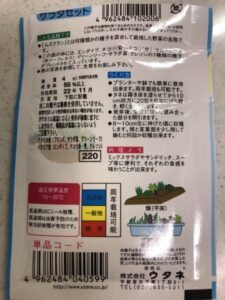 今回使用したのは、ホームセンターで購入した「サラダセット」という種袋です。